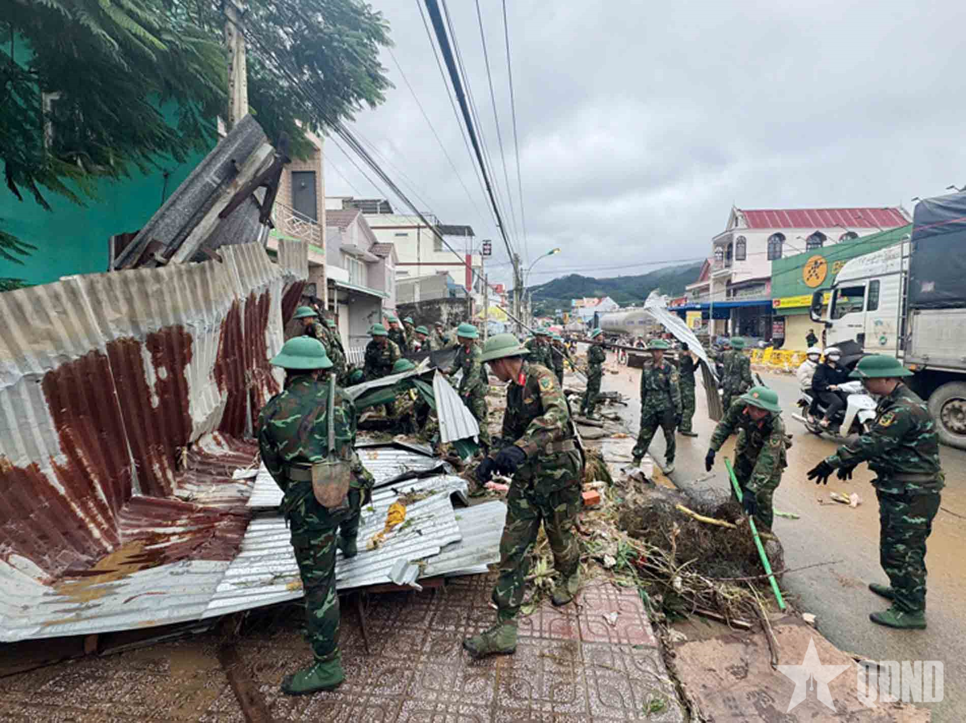 Trong 2 ngày, Sư đoàn 302 đã hỗ trợ sơ tán hàng chục hộ dân ra khỏi vùng nguy hiểm, dựng 3 nhà bạt làm điểm trú tạm, chuyển lương thực và nước sạch đến khu dân cư. Ở những khu vực nước rút, bộ đội giúp dân kê dọn đồ đạc, dựng, sửa chữa lại nhà, thu dọn bùn đất, kiểm tra những điểm có nguy cơ sạt lở và trao quà tặng các hộ dân bị thiệt hại nặng.