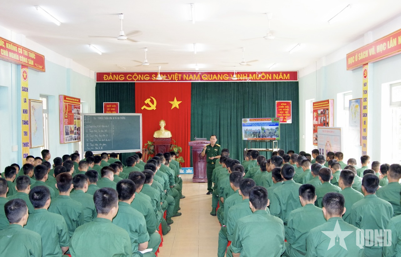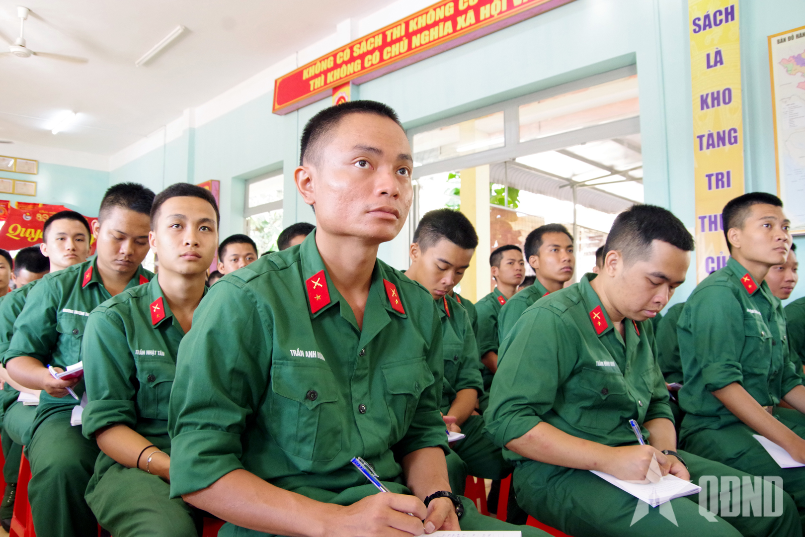 Những chiến sĩ mới chăm chú lắng nghe bài giảng.