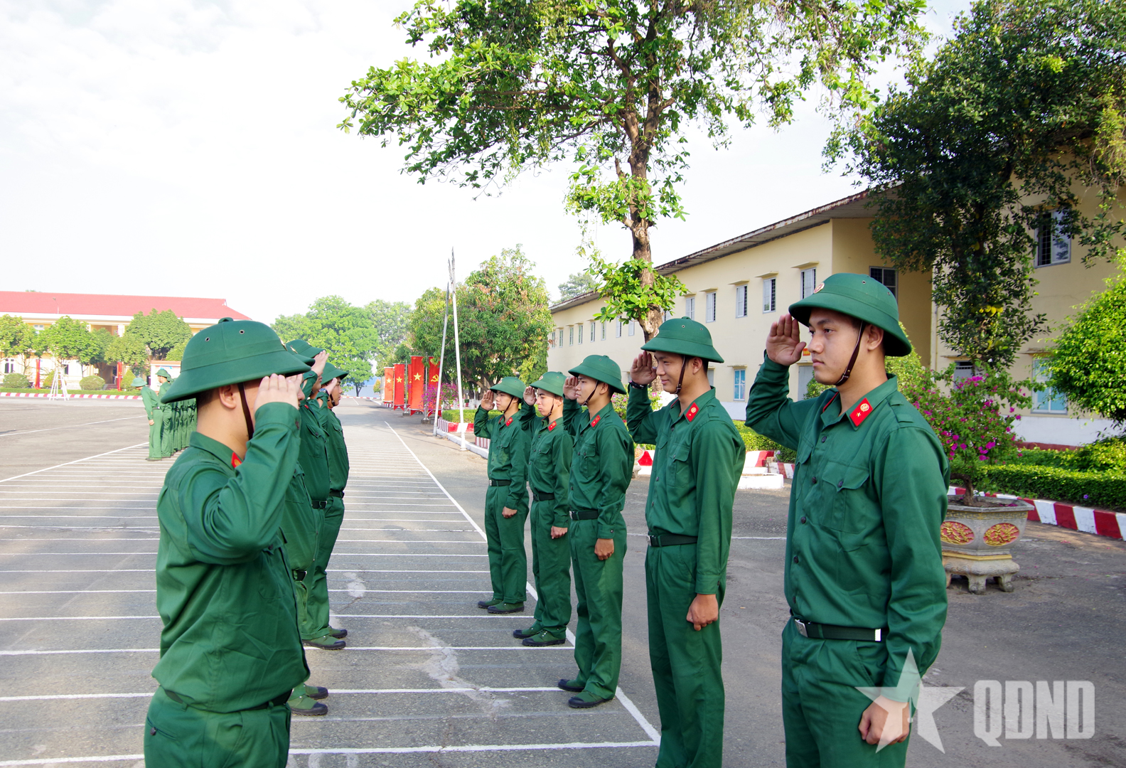 Chiến sĩ mới luyện tập động tác chào theo điều lệnh - nét đẹp văn hóa quân nhân.