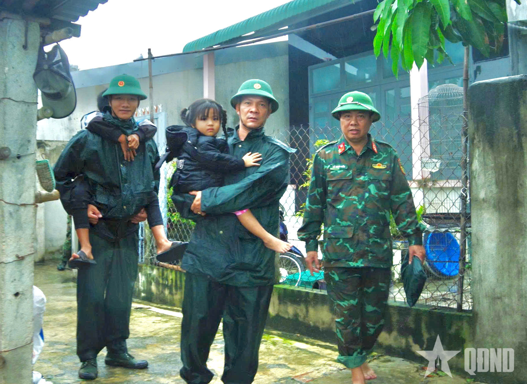 Cán bộ, chiến sĩ Sư đoàn 31 sơ tán người dân, trẻ nhỏ trước bão số 13.