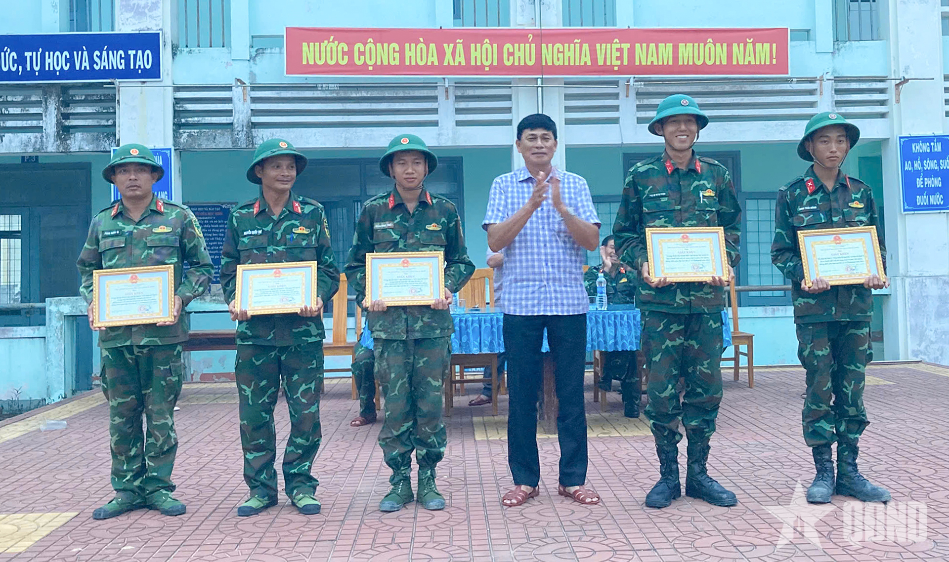 Lãnh đạo xã Tuy Phước Đông (tỉnh Gia Lai) trao giấy khen tặng các tập thể của Sư đoàn 31 có thành tích xuất sắc trong giúp nhân dân khắc phục hậu quả bão số 13.