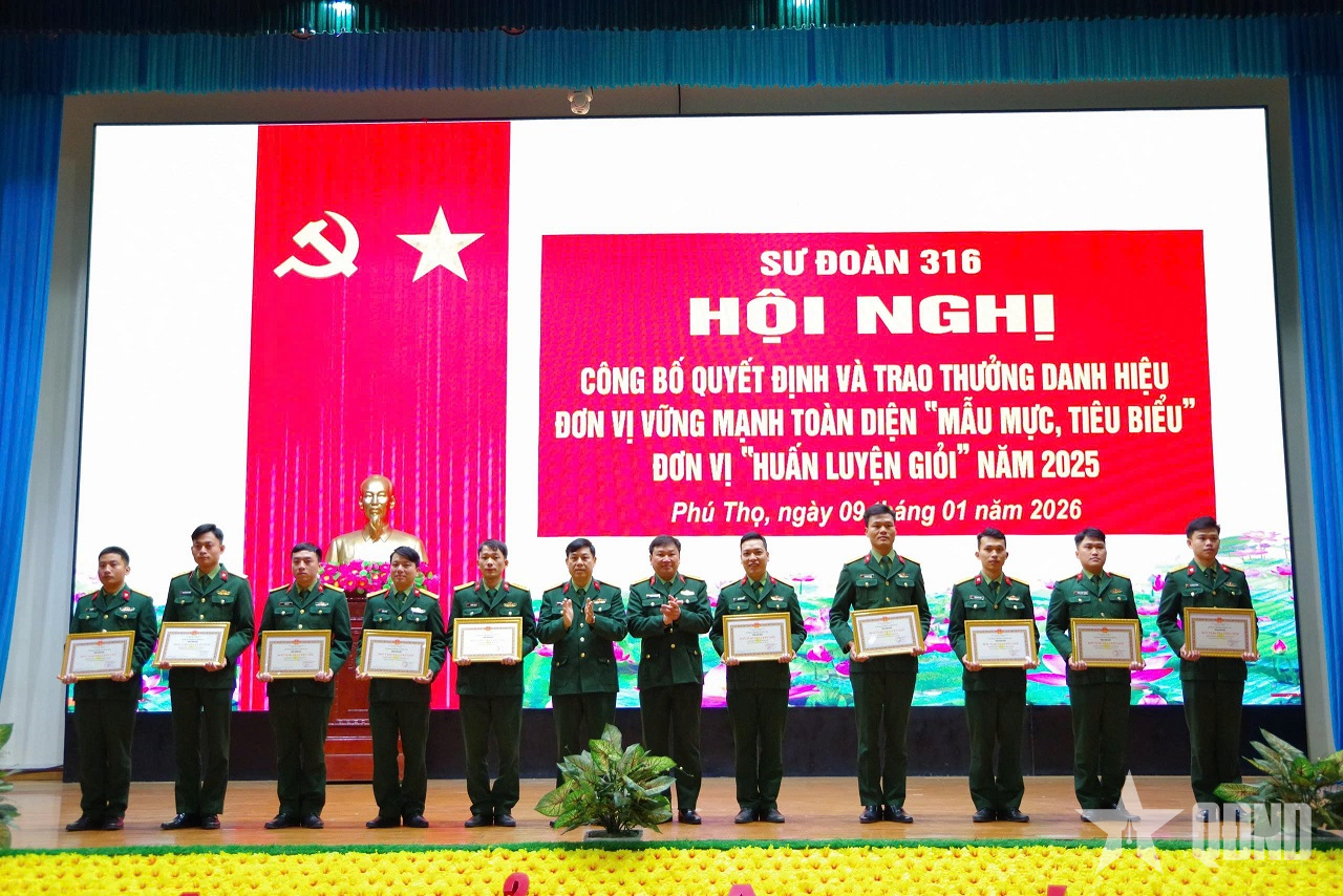 Cũng tại buổi phát động, Sư đoàn 316 đã công bố và trao thưởng danh hiệu Đơn vị vững mạnh toàn diện “mẫu mực, tiêu biểu”, Đơn vị “Huấn luyện giỏi” năm 2025 cấp Quân khu và Sư đoàn cho 29 tập thể có thành tích tiêu biểu.