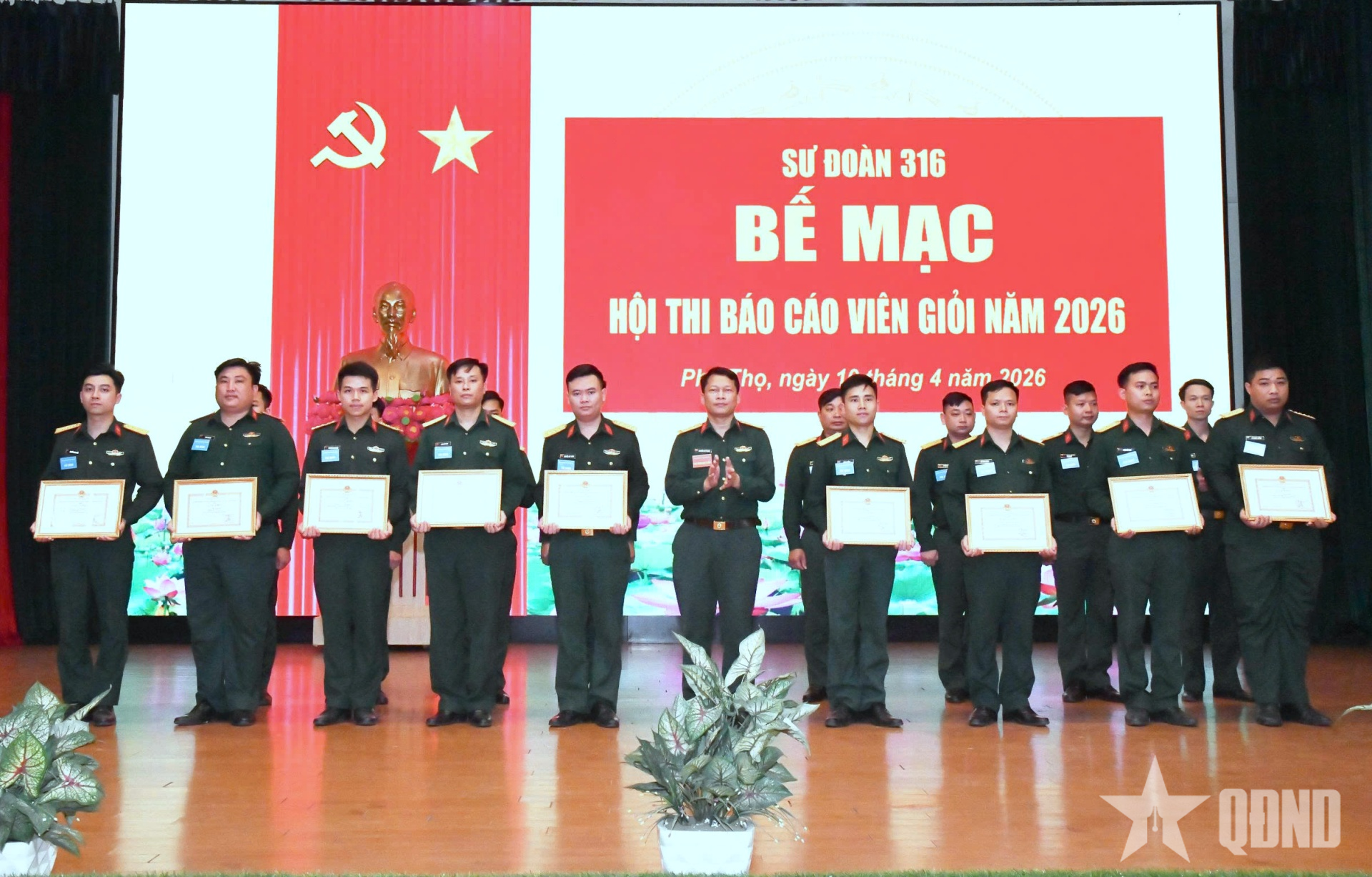 Kết thúc hội thi, chỉ huy sư đoàn đã trao 1 giải nhất, 2 giải nhì, 3 giải ba tặng các thí sinh có thành tích xuất sắc; đồng thời tặng giấy chứng nhận cho 18 đồng chí đạt danh hiệu Báo cáo viên giỏi cấp Sư đoàn năm 2026.