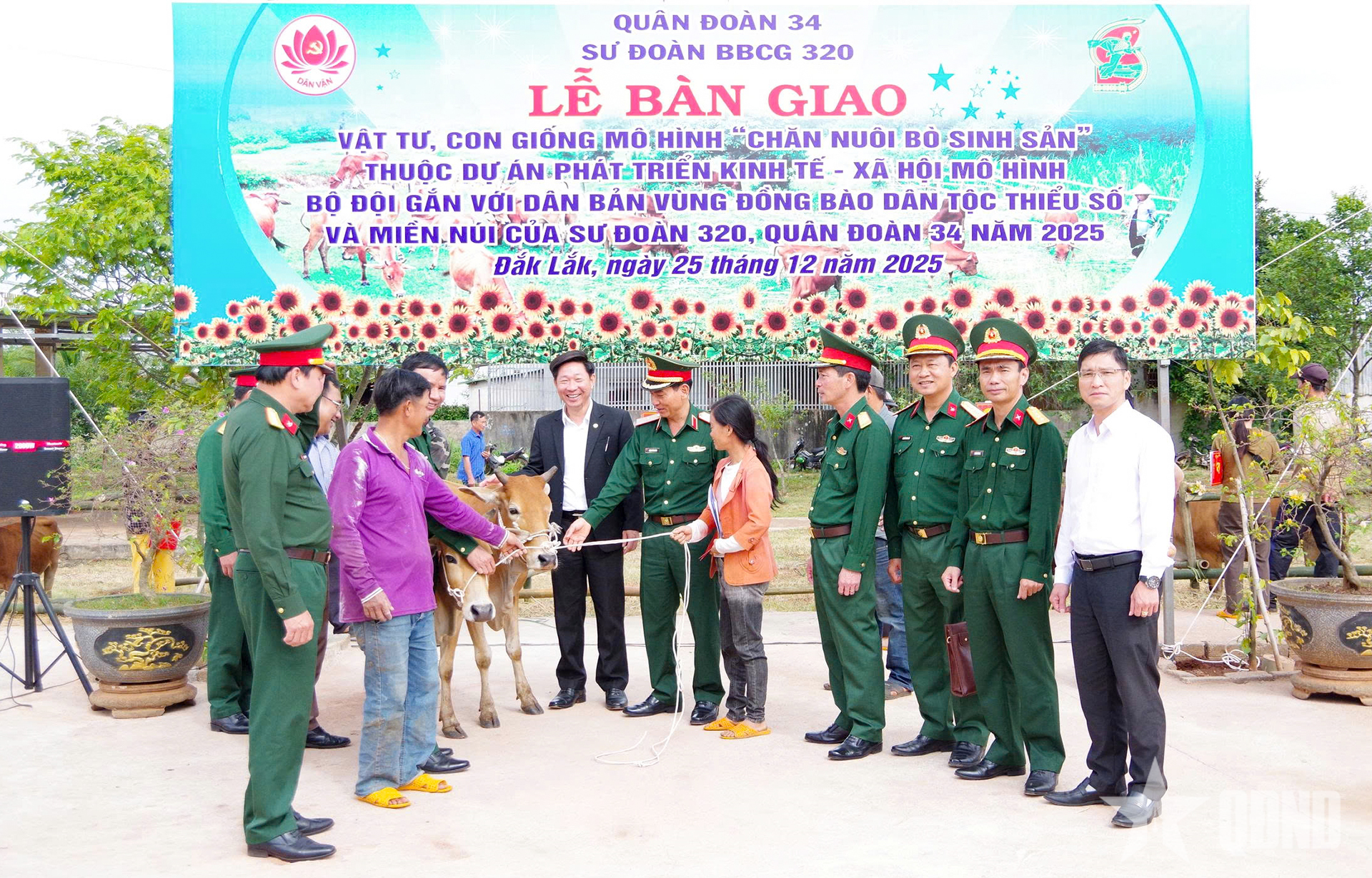 Thực hiện Chương trình mục tiêu quốc gia, dự án phát triển kinh tế - xã hội, mô hình bộ đội gắn với dân bản vùng đồng bào dân tộc thiểu số và miền núi năm 2025, Sư đoàn 320 đã phối hợp với Đảng ủy, UBND xã Ea H’leo xây dựng mô hình chăn nuôi bò sinh sản.