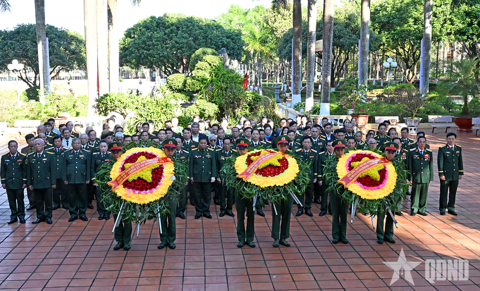 Trước buổi lễ, Trung tướng Đào Tuấn Anh và các đại biểu dâng hoa, dâng hương tại Nhà tưởng niệm các anh hùng liệt sĩ Sư đoàn 320.