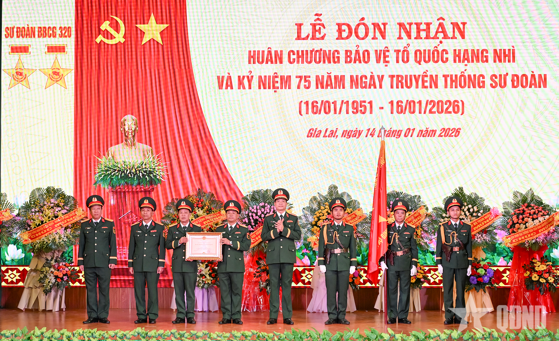 Thừa ủy quyền của Chủ tịch nước, Trung tướng Đào Tuấn Anh, Tư lệnh Quân đoàn 34 trao Huân chương Bảo vệ Tổ quốc hạng Nhì tặng Sư đoàn 320.