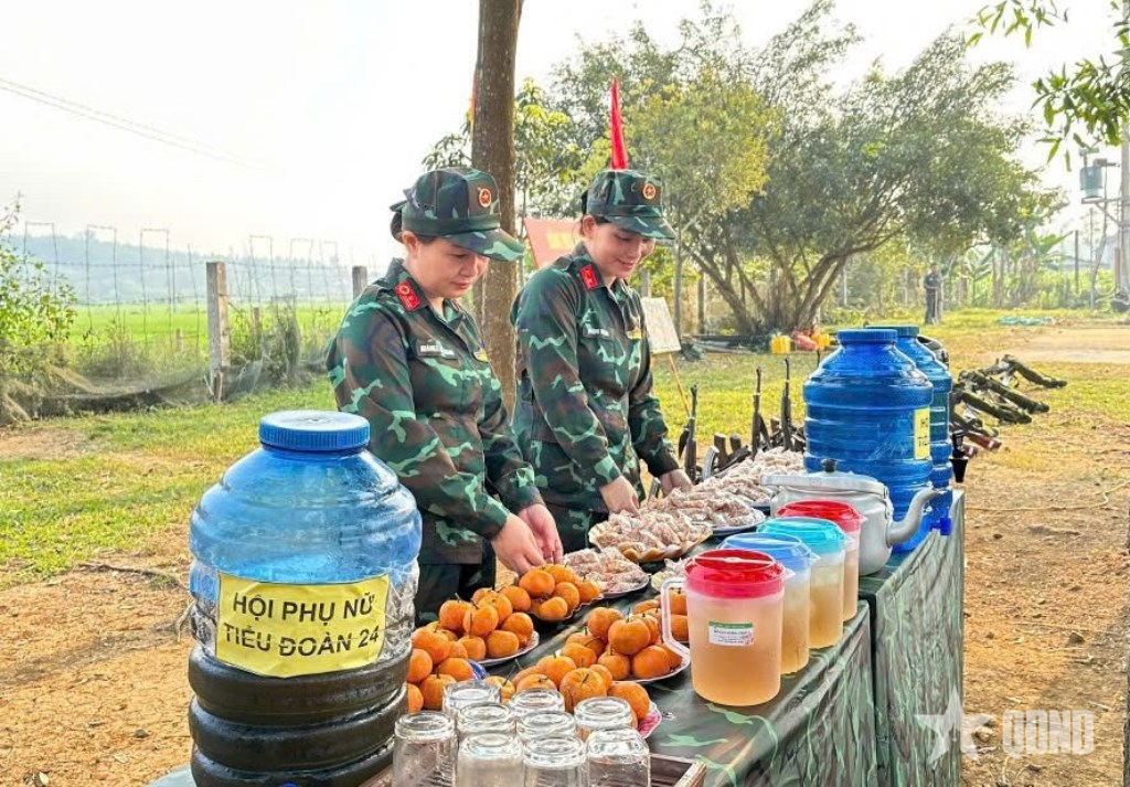 Nước uống, hoa quả, bánh kẹo được Hội Phụ nữ Sư đoàn 324 chuẩn bị đầy đủ, chu đáo.