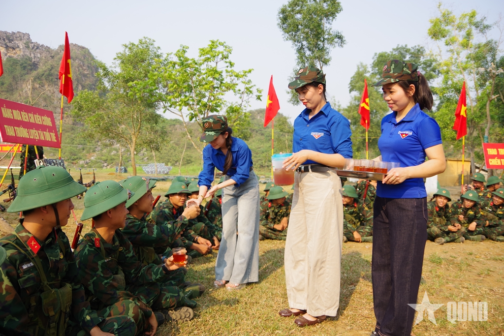 Đoàn viên, thanh niên địa phương cùng tham gia các hoạt động "Bát nước thao trường" động viên các chiến sĩ.