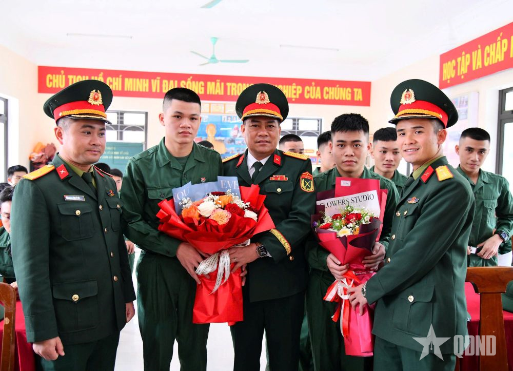 Đại tá Nguyễn Thao Trường, Sư đoàn trưởng Sư đoàn 324 và đoàn công tác tặng hoa chúc mừng chiến sĩ mới năm 2026