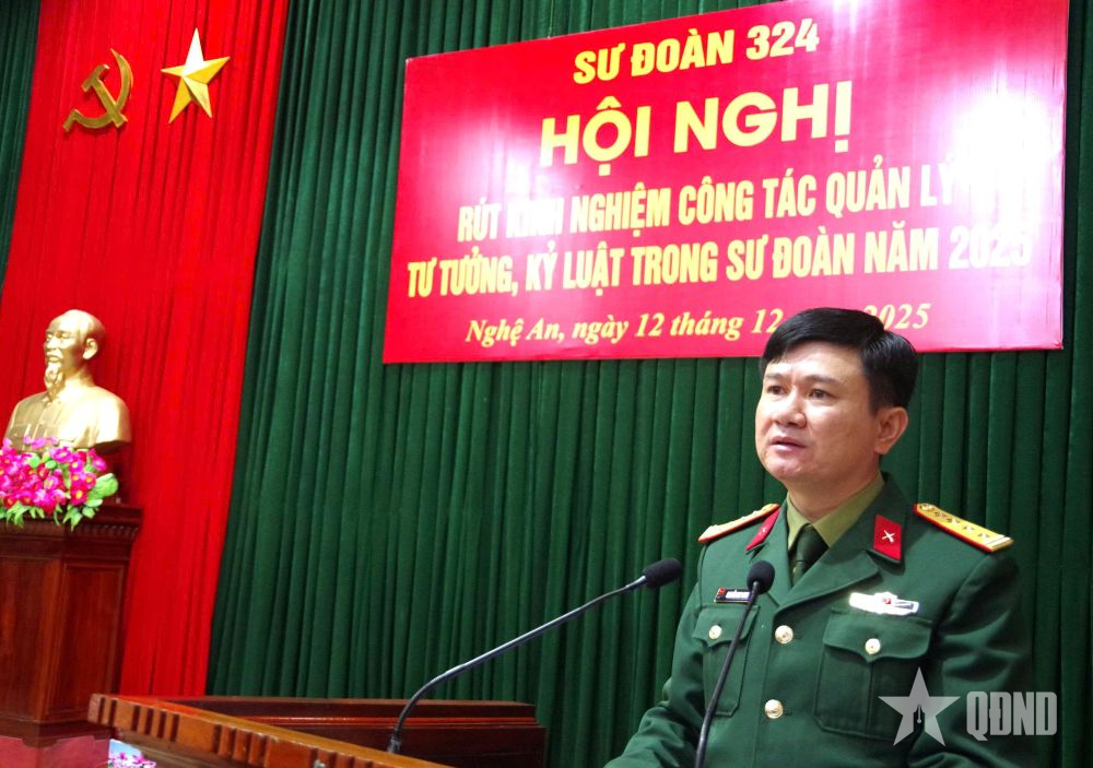 Phát biểu kết luận, Đại tá Nguyễn Huy Long, Bí thư Đảng ủy, Chính ủy Sư đoàn ghi nhận, biểu dương các cơ quan, đơn vị đã làm tốt công tác quản lý tư tưởng, kỷ luật trong thời gian qua. Đồng thời yêu cầu các cơ quan, đơn vị tiếp tục thực hiện đồng bộ các giải pháp đột phá trong giáo dục tư tưởng, quản lý kỷ luật; thường xuyên nắm, đánh giá, dự báo và giải quyết tình hình tư tưởng theo phương châm: “Nắm chắc, dự báo sát, quản lý chặt, định hướng đúng, giải quyết kịp thời và đấu tranh hiệu quả”; tăng cường lãnh đạo, chỉ đạo giữ nghiêm pháp luật Nhà nước, kỷ luật Quân đội và bảo đảm an toàn tuyệt đối trong đơn vị; làm tốt công tác phối hợp giữa đơn vị, địa phương và gia đình để giáo dục, động viên bộ đội; chỉ đạo kết hợp chặt chẽ công tác quản lý bộ đội, quản lý tư tưởng, kỷ luật với tổ chức phong trào Thi đua Quyết thắng, xây dựng môi trường văn hóa quân sự lành mạnh ở các đơn vị.