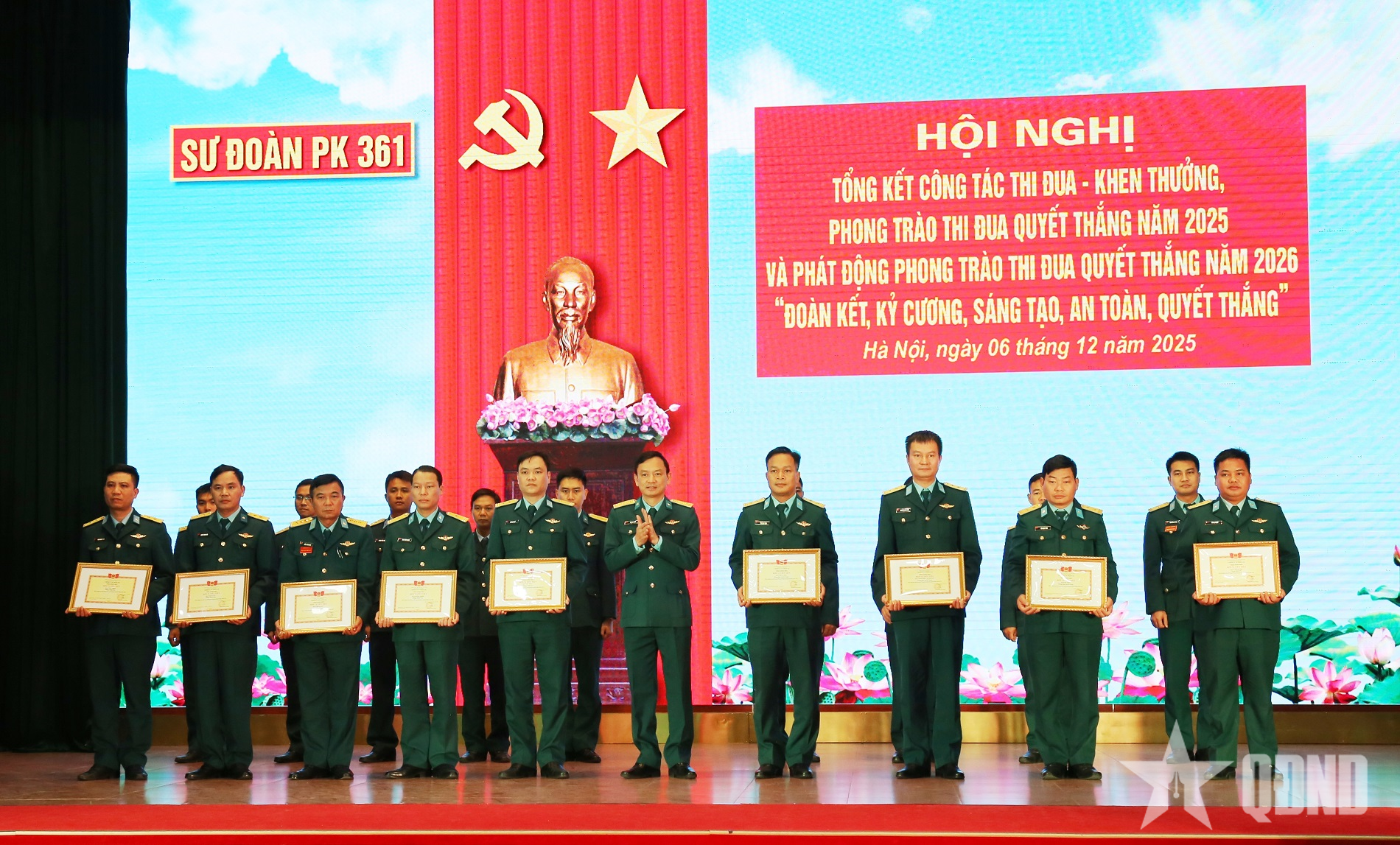 Tại Hội nghị, Sư đoàn đã phát động Phong trào Thi đua Quyết thắng năm 2026 với chủ đề “Đoàn kết, kỷ cương, sáng tạo, an toàn, quyết thắng” và tiến hành trao thưởng cho 2 Đảng bộ Trung đoàn 236, Trung đoàn 218 đạt tiêu chuẩn “Hoàn thành xuất sắc nhiệm vụ” tiêu biểu năm 2025 và các tập thể đạt danh hiệu “Đơn vị tiên tiến”; các cá nhân đạt danh hiệu “Chiến sĩ thi đua” năm 2025.