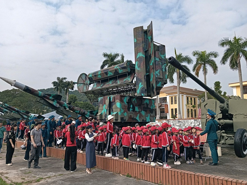 Các em học sinh Trường mầm non Hoa Hướng Dương (TP Hải Phòng) tham quan Nhà truyền thống Sư đoàn 363.