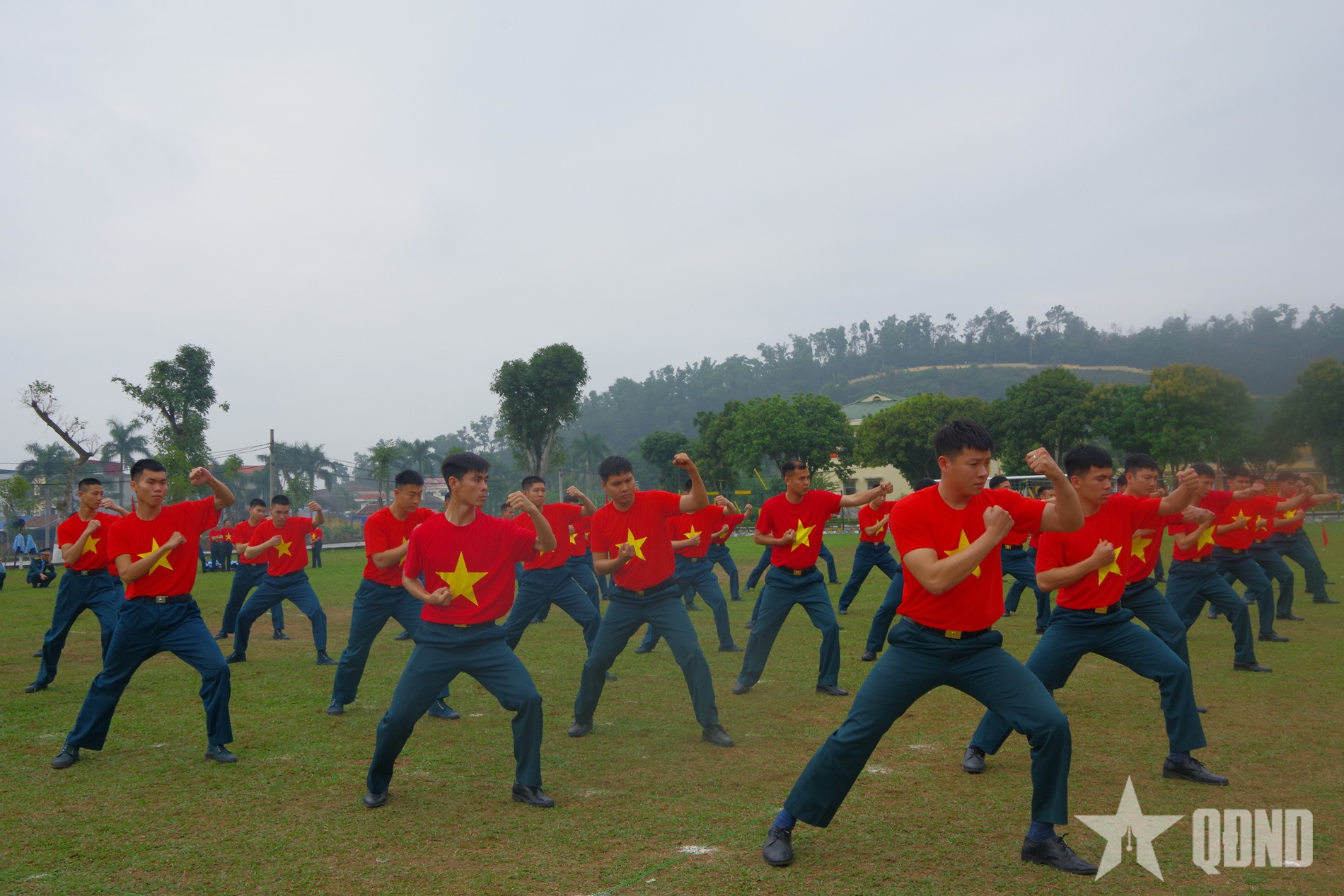 Cán bộ, chiến sĩ Tiểu đoàn 10, Phòng Tham mưu đồng diễn thể dục và võ tay không tại lễ ra quân huấn luyện năm 2026.