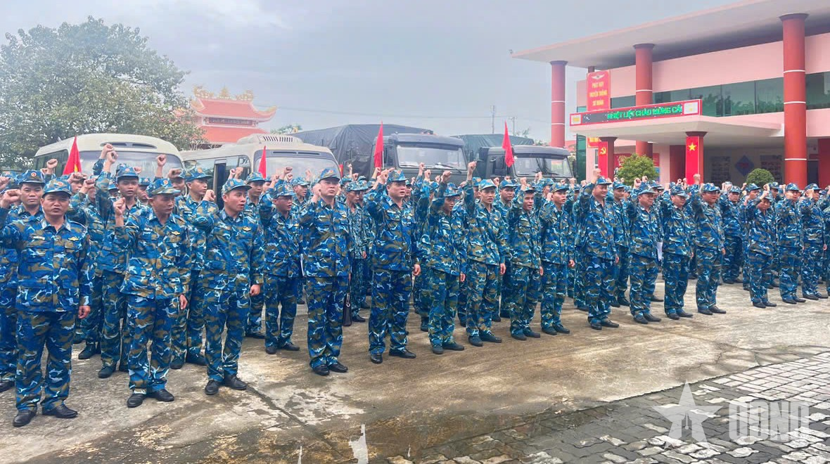 Cán bộ, chiến sĩ Sư đoàn 375 thể hiện quyết tâm tại lễ xuất quân.