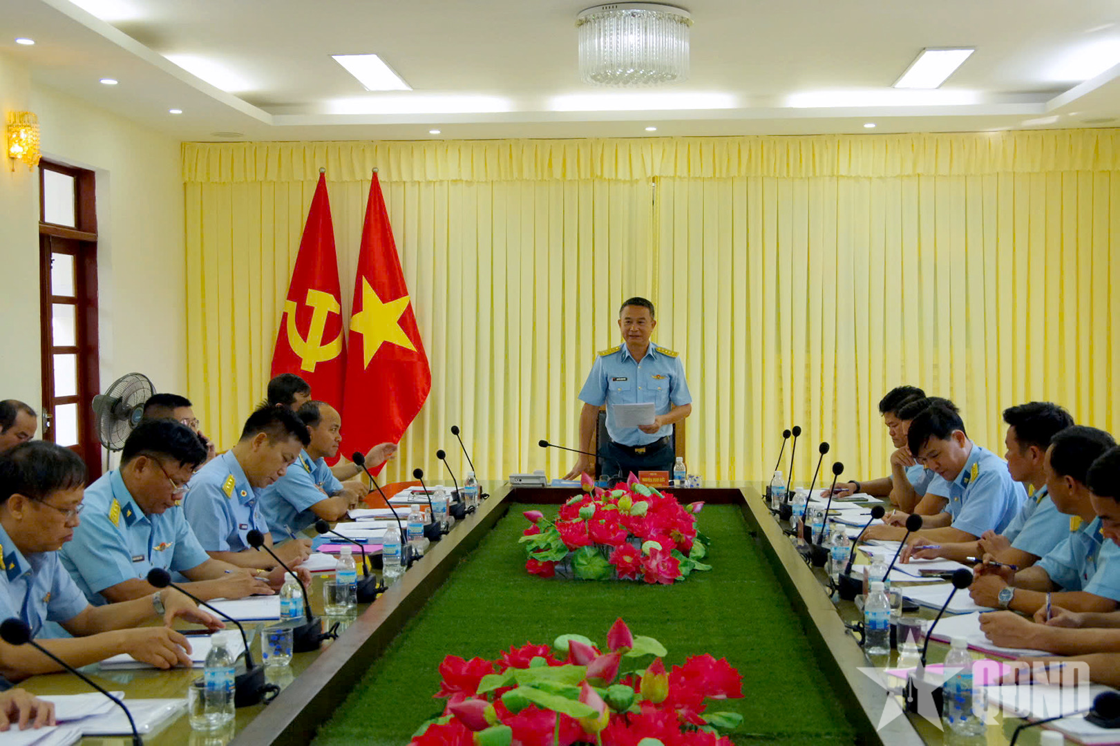 Đại tá Nguyễn Minh Đức, Phó chính ủy Sư đoàn 377 phát biểu kết luận hội nghị.
