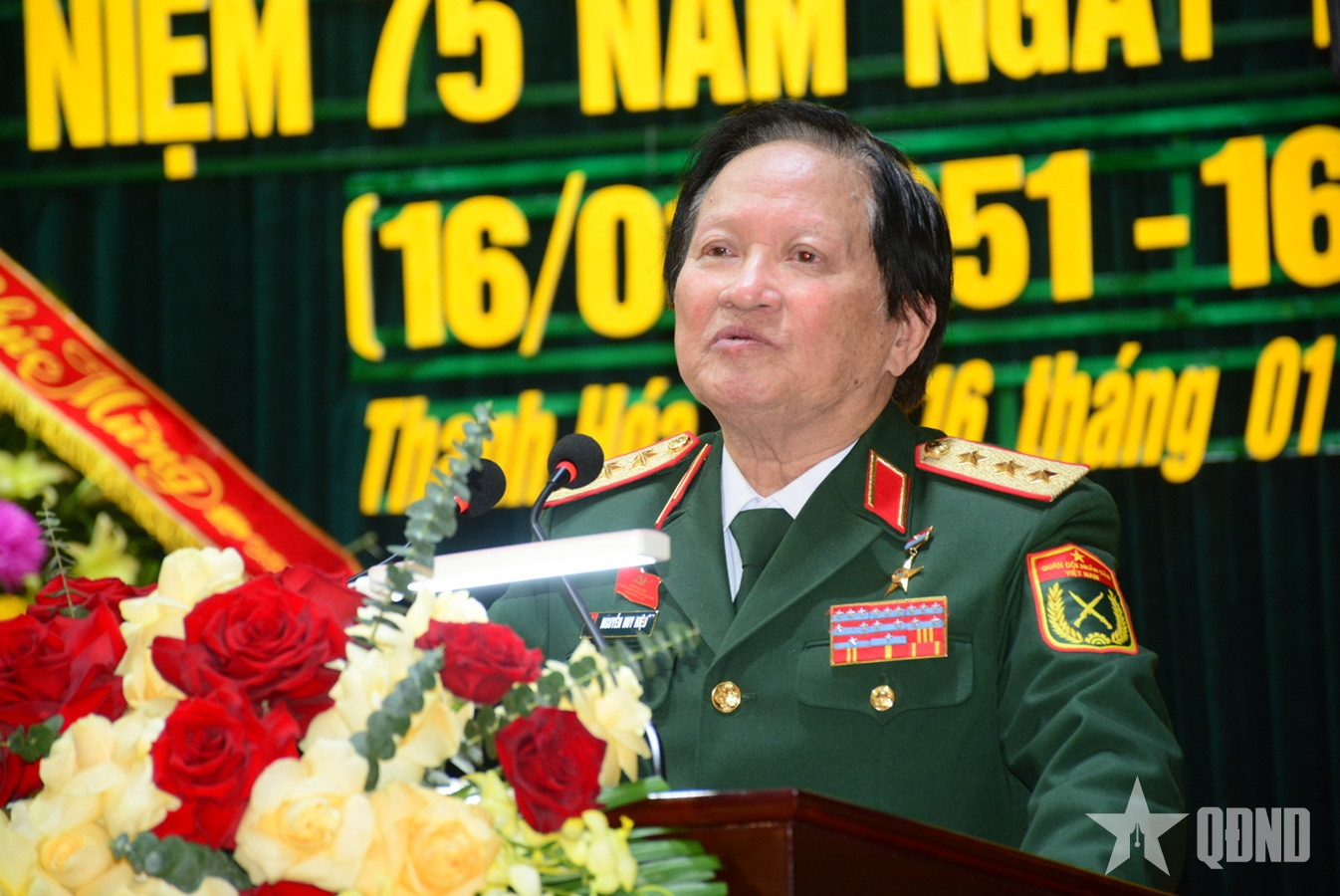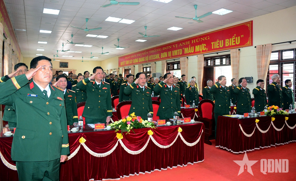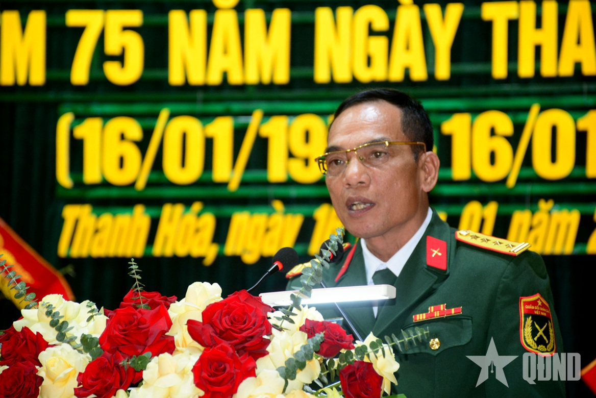 Thượng tướng, Viện sĩ, Anh hùng Lực lượng vũ trang nhân dân Nguyễn Huy Hiệu, nguyên Thứ trưởng Bộ Quốc phòng, nguyên Sư đoàn trưởng Sư đoàn 390 phát biểu tại buổi lễ.