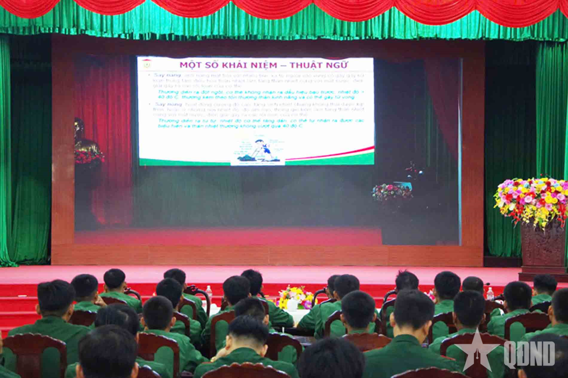 Các đồng chí giáo viên đã đưa ra nhiều thông tin về nguyên nhân và yếu tố nguy cơ khi bộ đội hoạt động trong điều kiện nắng nóng, cơ thể mất nước, rối loạn điện giải; người chưa thích nghi với môi trường nắng nóng… đồng thời đưa ra các biện pháp dự phòng trước, trong huấn luyện; tuyên truyền cho bộ đội hiểu và nhận biết những dấu hiệu đầu tiên khi đồng đội bị say nắng, say nóng…