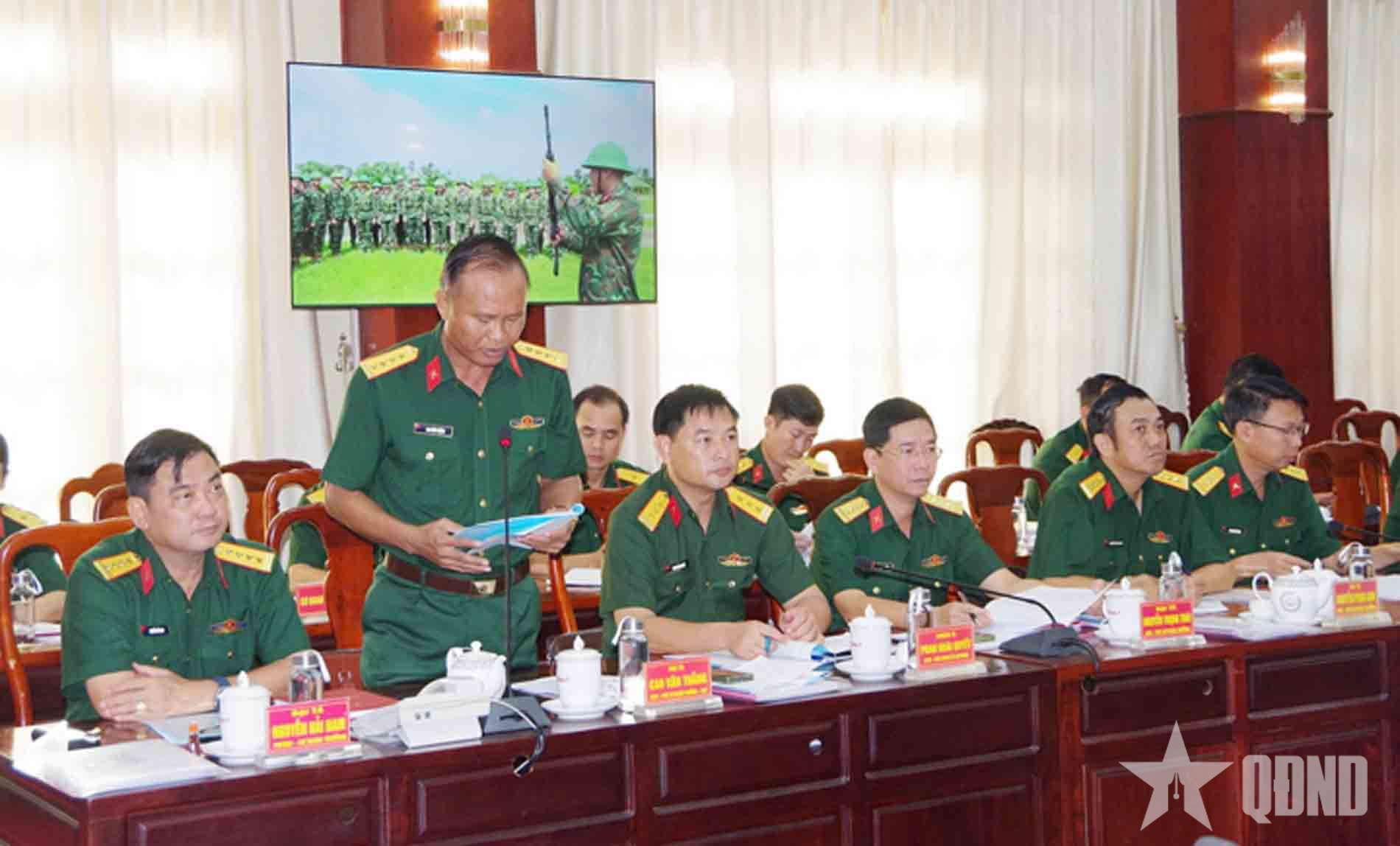 Thiếu tướng Trần Đức Thắng, Phó chủ nhiệm Chính trị Quân khu 7 phát biểu chỉ đạo tại hội nghị.