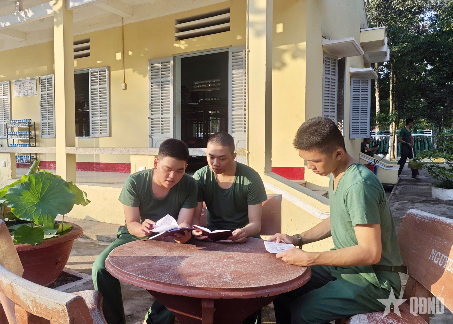 Chiến sĩ mới tìm hiểu các thông tin trong cuốn Sổ tay chiến sĩ.