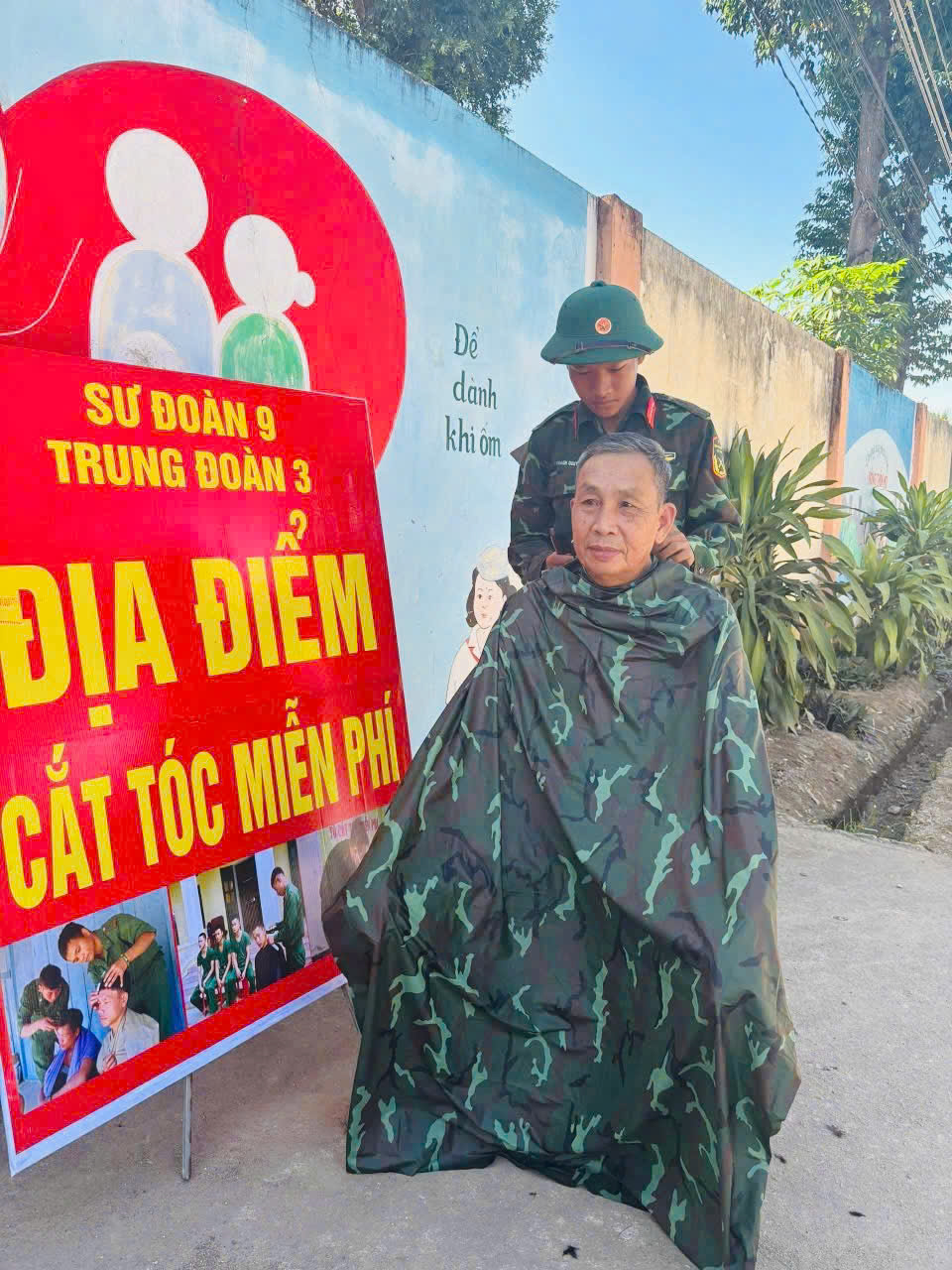 Bộ đội cắt tóc miễn phí giúp nhân dân.
