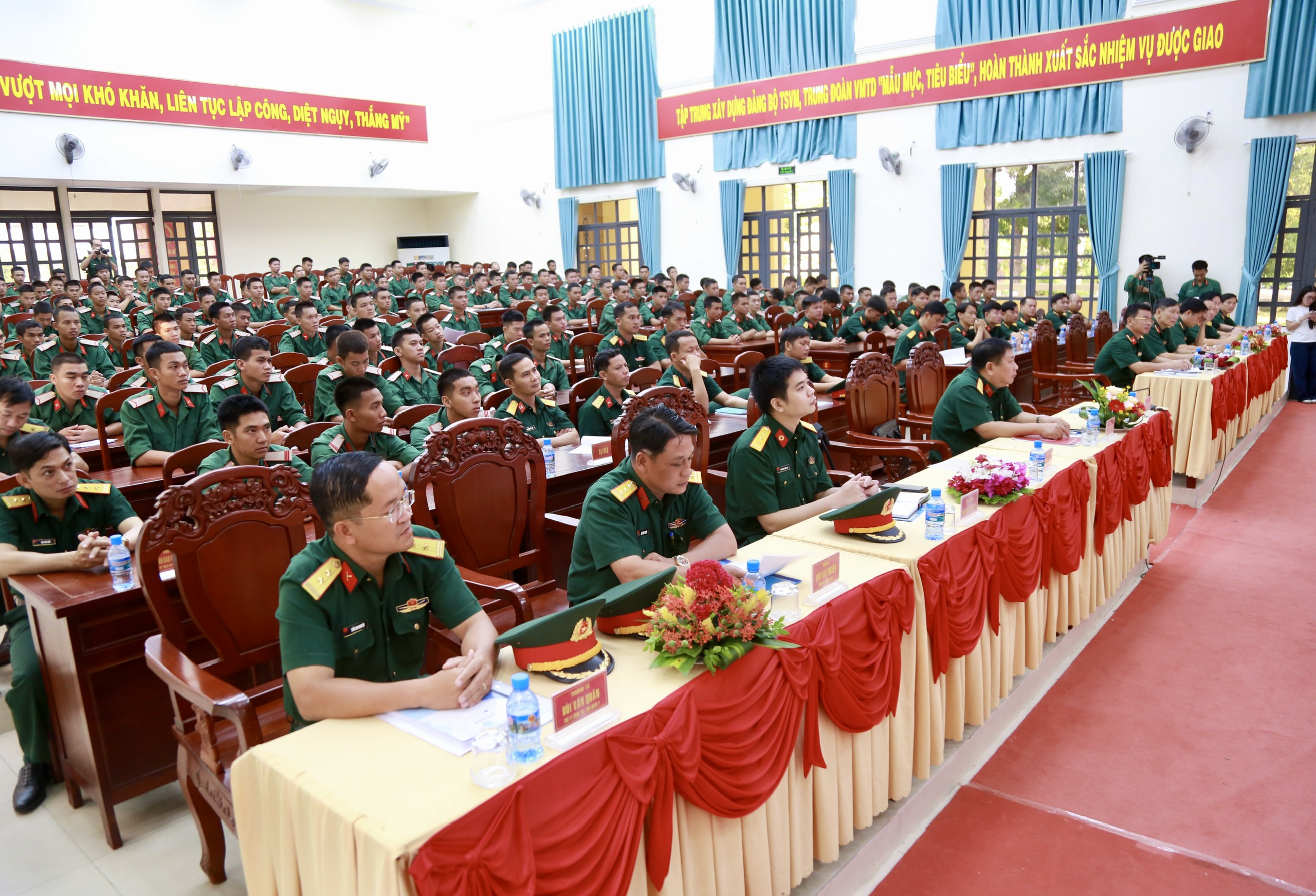 Đại tá Lê Văn Quyết, Sư đoàn trưởng Sư đoàn 9, dự khai mạc hội nghị triển khai tiêm vắc xin phòng bệnh cho chiến sĩ mới năm 2026.