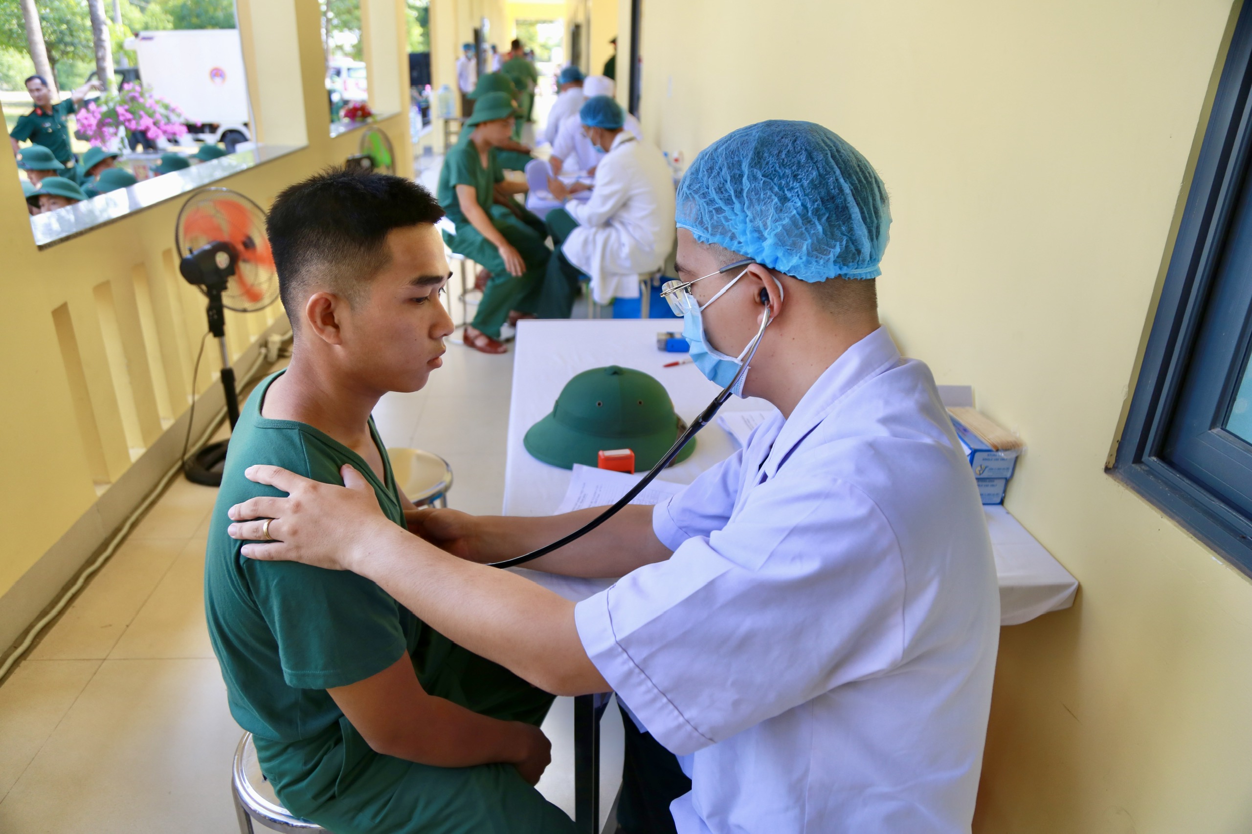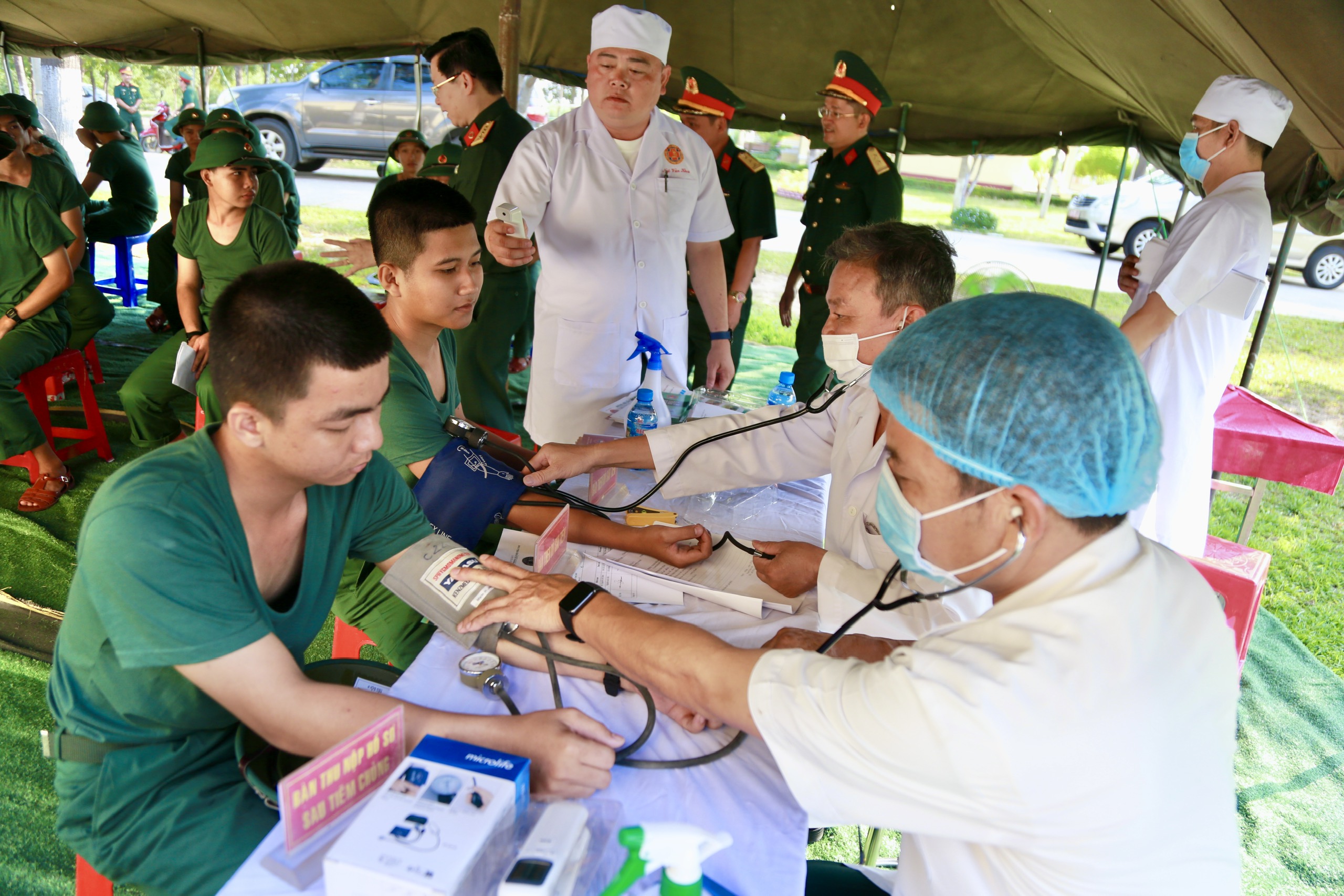 Trước khi tiêm vắc xin các chiến sĩ mới được khám sàng lọc, kiểm tra sức khỏe.