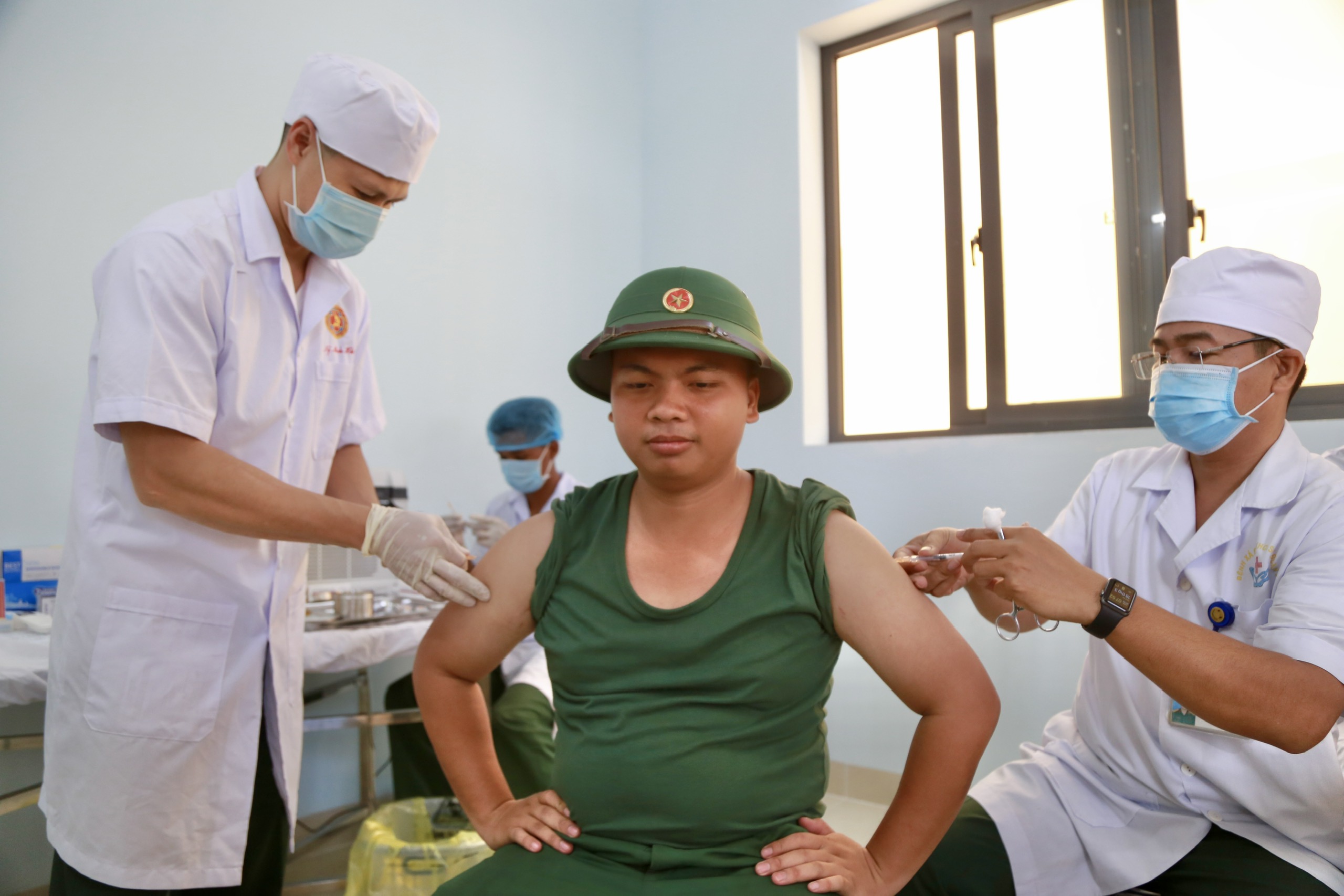 Các tân binh được kiểm tra sức khỏe sau tiêm.