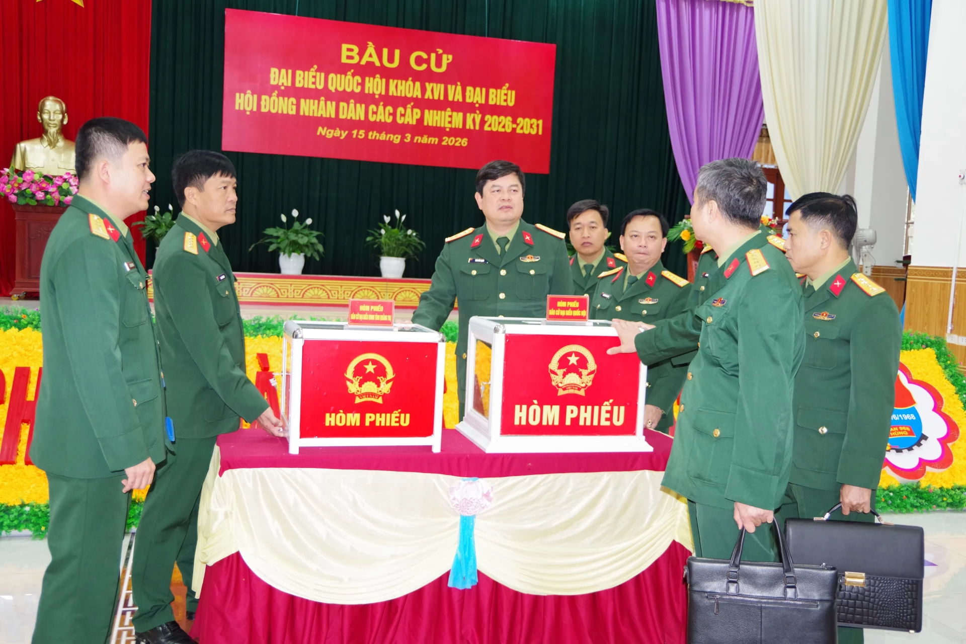 Toàn Sư đoàn có 4 khu vực bỏ phiếu. Công tác chuẩn bị được triển khai nghiêm túc, chặt chẽ; hệ thống pa-nô, khẩu hiệu, cờ hoa được trang trí trang trọng; các quy định, quy trình bầu cử được niêm yết công khai, bảo đảm đúng quy định.