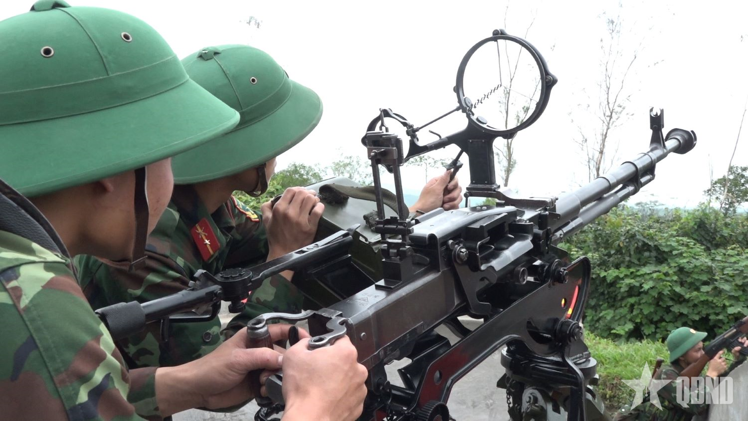 Cán bộ, chiến sĩ Đại đội Phòng không 16, Trung đoàn 19, Sư đoàn 968 trực sẵn sàng chiến đấu tại trận địa súng máy SMPK-12,7mm.