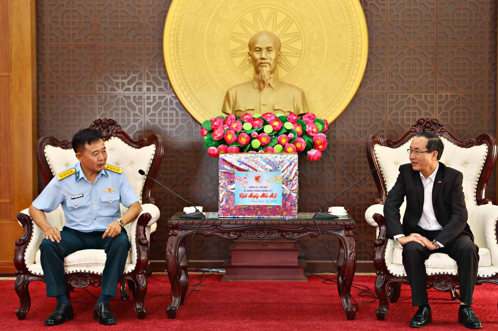 Nhân dịp năm mới, lãnh đạo Sư đoàn Phòng không 377 chúc Đảng bộ, chính quyền và Nhân dân tỉnh Lâm Đồng đón Tết vui tươi, an lành; mong tỉnh tiếp tục đạt nhiều kết quả tích cực trong phát triển kinh tế - xã hội, đồng thời củng cố vững chắc quốc phòng, an ninh trên địa bàn.