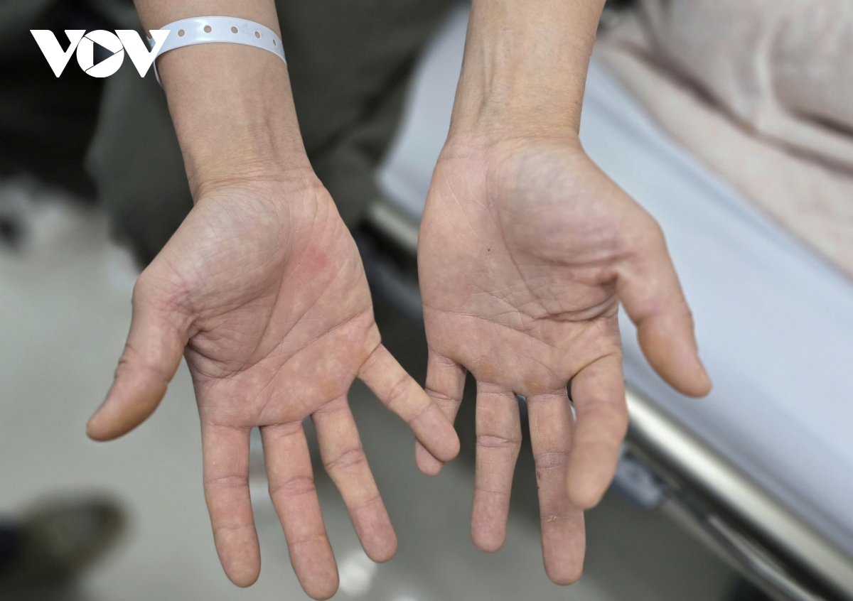 Bàn tay của anh H. bị tê bì, không thể khép lại và mất cảm giác