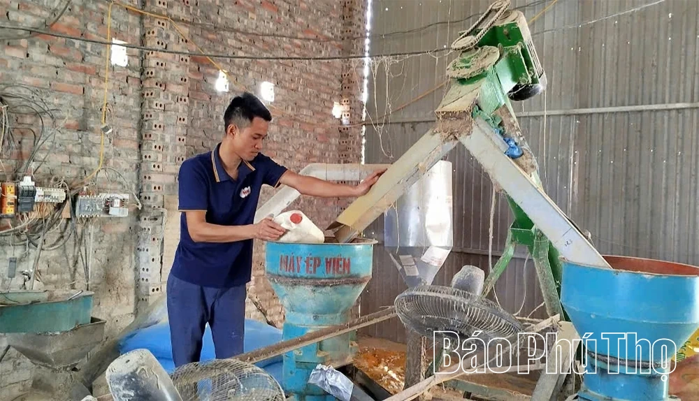 Chủ động lắp đặt hệ thống chế biến thức ăn cho gia cầm giúp gia đình anh Phan Kim Hùng, xã Hùng Việt tiết kiệm chi phí đầu vào, mang lại hiệu quả cao trong chăn nuôi.
