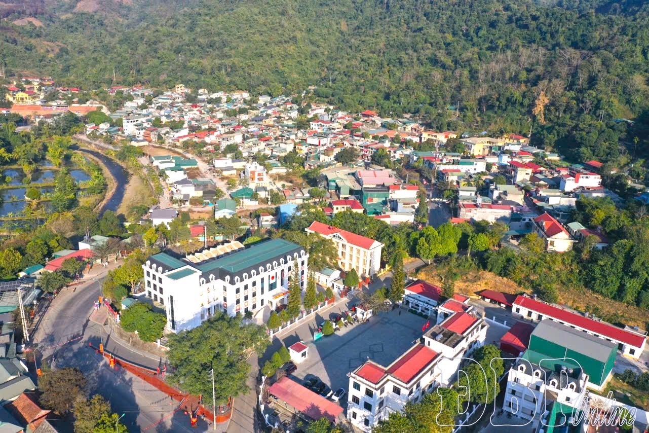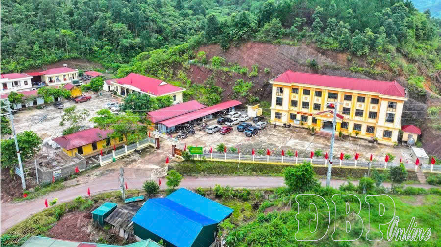 Trung tâm hành chính xã Búng Lao mới nhìn từ trên cao.