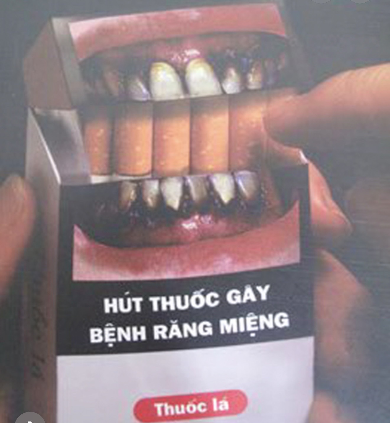 Tổ chức Y tế thế giới khuyến cáo, cảnh báo sức khỏe cần được in với diện tích lớn, rõ ràng, dễ nhìn, sử dụng hình ảnh trực quan và được luân phiên thay đổi định kỳ nhằm duy trì hiệu quả tác động.