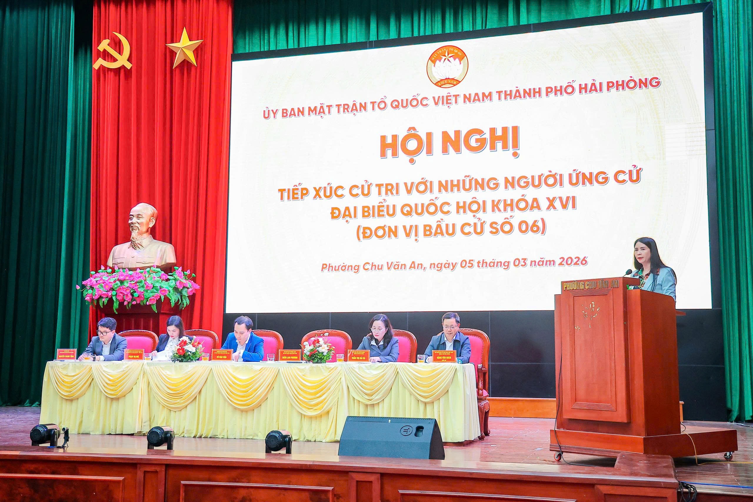 Hội nghị tiếp xúc cử tri của những người ứng cử đại biểu Quốc hội khóa XVI tại Đơn vị bầu cử số 6, thành phố Hải Phòng, được tổ chức trực tiếp tại phường Chu Văn An và trực tuyến tới 10 phường, xã gồm: Trần Nhân Tông, Lê Đại Hành, Chí Linh, Trần Hưng Đạo, Nguyễn Trãi, Nam Sách, Thái Tân, Hợp Tiến, Trần Phú, An Phú.