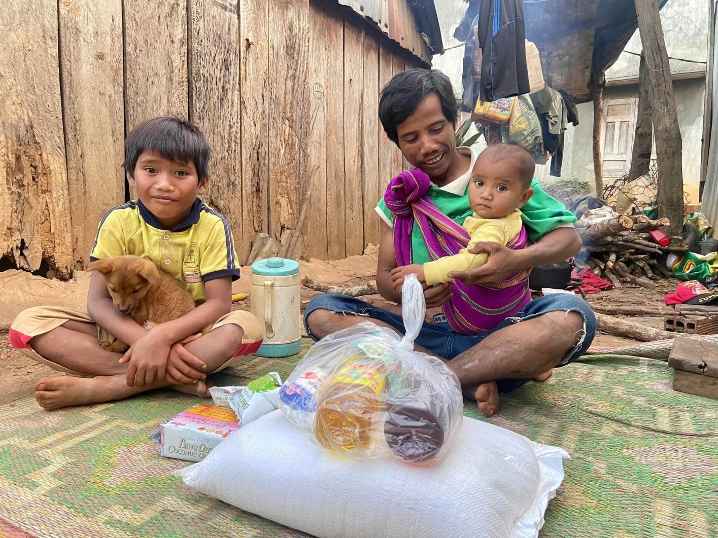 Người dân làng Kret Krot vui mừng nhận quà Tết.