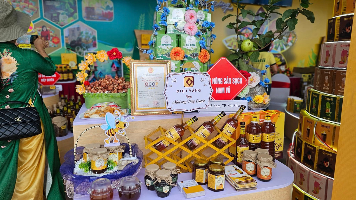 Không gian nông sản – OCOP gồm 30 gian hàng với trên 200 sản phẩm đặc trưng của Hải Phòng như gạo nếp cái hoa vàng, mật ong rừng, bánh gai, bột sắn dây, cà rốt, bánh đậu xanh...
