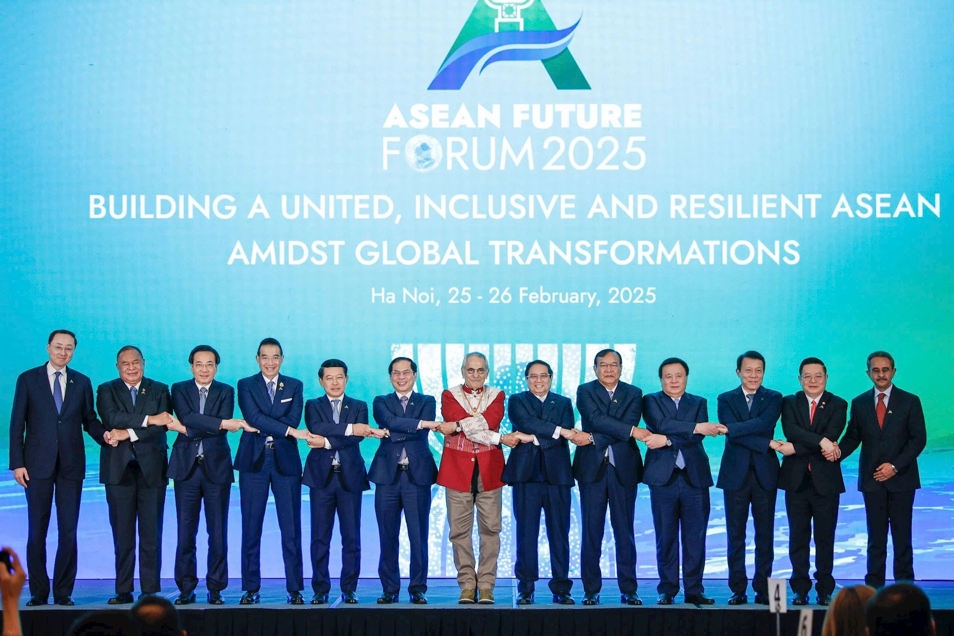 Thủ tướng Chính phủ Phạm Minh Chính cùng đại biểu và Trưởng đoàn các nước tham dự Diễn đàn Tương lai ASEAN 2025 tổ chức tại Hà Nội, tháng 2/2025. Ảnh: S.T