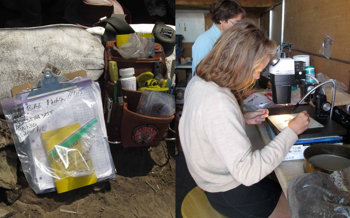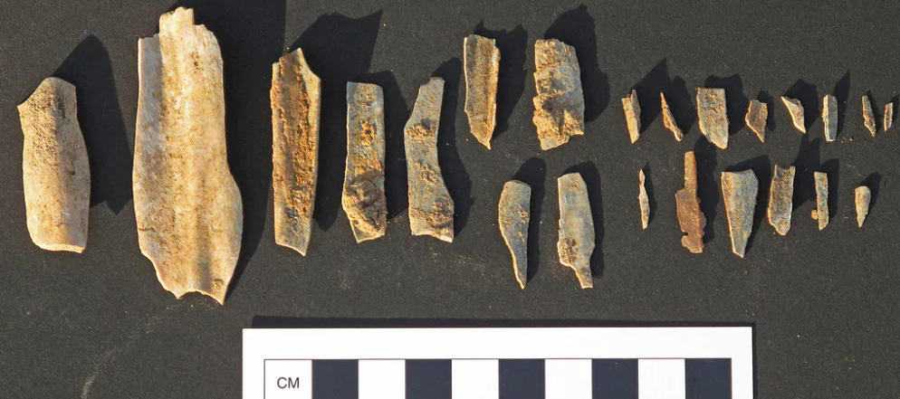 Chúng bao gồm một dụng cụ cạo bằng đá có dính máu bò rừng và những mảnh răng lạc đà. Ảnh: @Đại học Oregon.