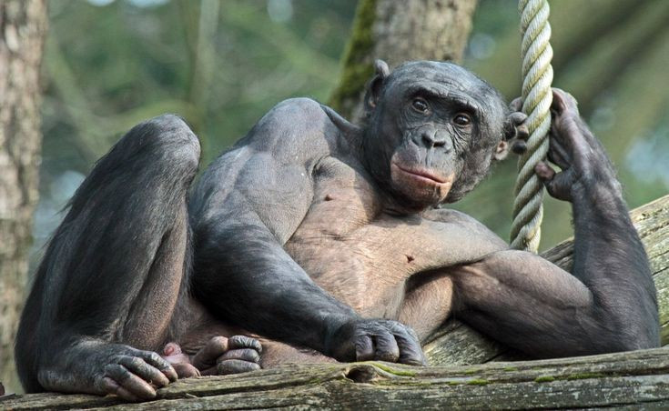 Bonobo hiếm khi giết lẫn nhau. Khác với tinh tinh thường xuyên có chiến tranh giữa các nhóm, bonobo tránh bạo lực và không ghi nhận hành vi giết đồng loại trong tự nhiên. Ảnh: Pinterest.