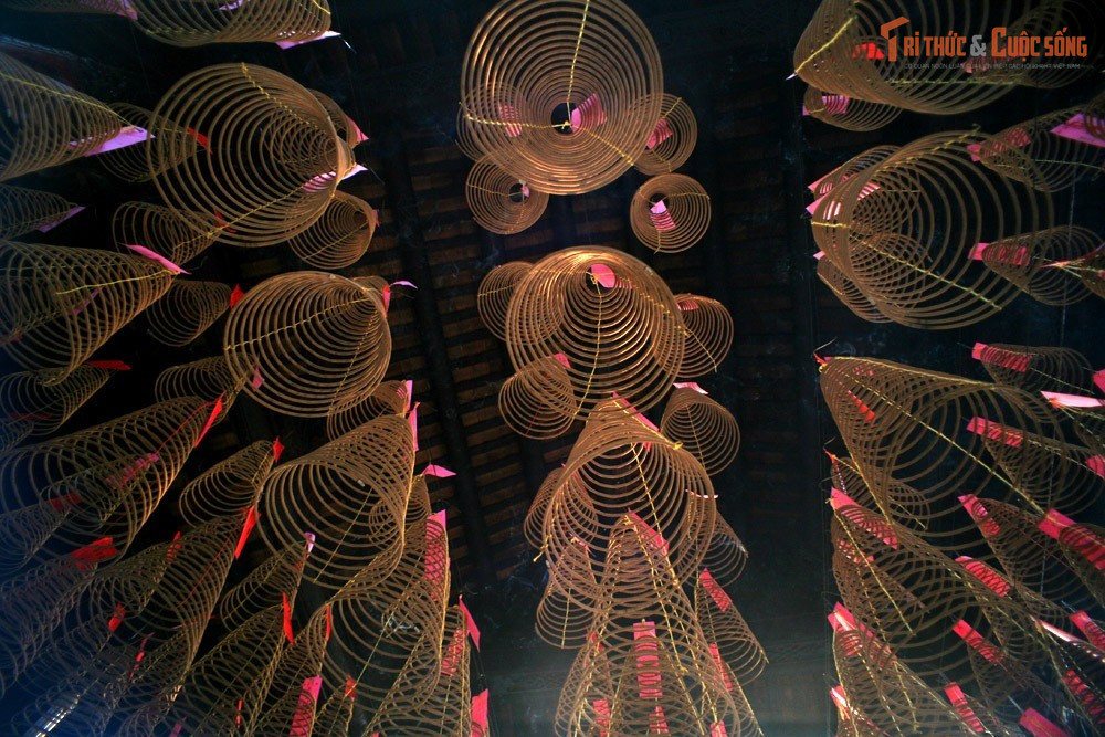 Hàng trăm vòng nhang khổng lồ treo suốt năm. Các vòng nhang lớn được treo trong điện chính, mỗi vòng có thể cháy từ vài ngày đến vài tuần, mang ý nghĩa cầu bình an.
