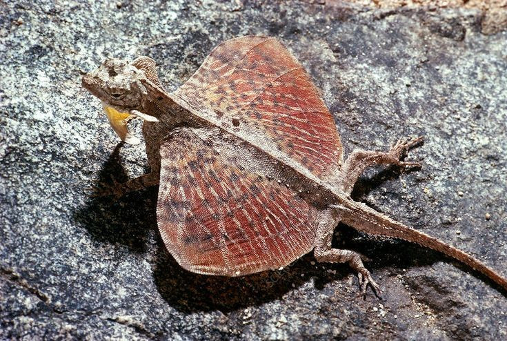 Không thực sự biết bay. Thằn lằn bay Draco không bay như chim mà chỉ có thể lượn xa nhờ màng da kéo căng giữa các xương sườn. Ảnh: Pinterest.