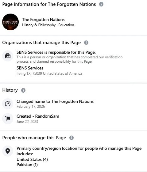 Theo Lead Stories, trang The Forgotten Nations trên Facebook được quản lý bởi những người ở Mỹ và Pakistan.
