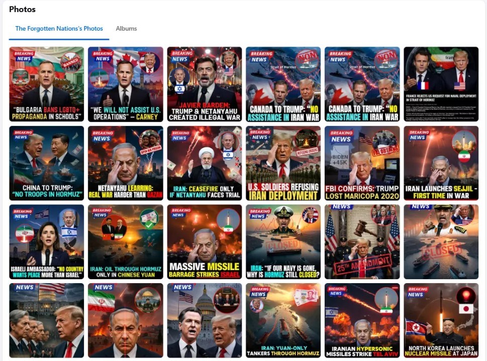 The Forgotten Nations không đăng tải thông tin từ các nguồn tin đáng tin cậy. Nó chỉ đơn giản là một tài khoản mạng xã hội thường xuyên đăng tải những phiên bản giật gân – và thường là hư cấu – về các sự kiện thế giới. Trang này đã đăng tải hàng chục bài như vậy.