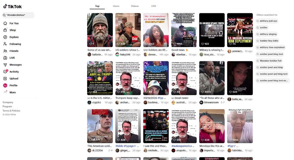 Tìm kiếm trên TikTok cho thấy khoảng 150 bài đăng có hashtag #SoldiersRefuse.