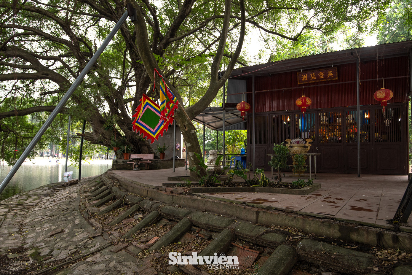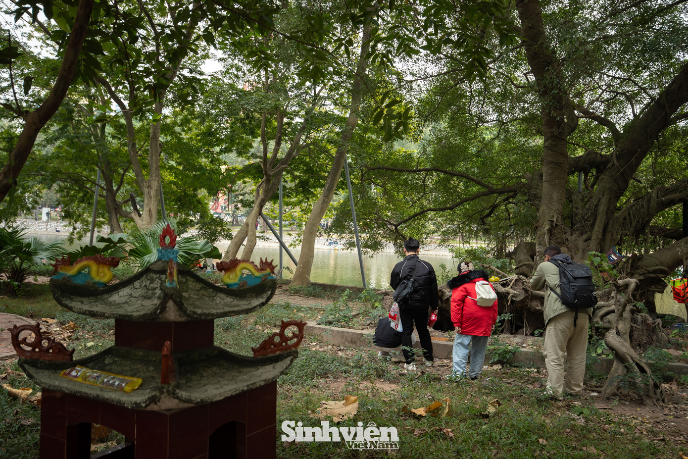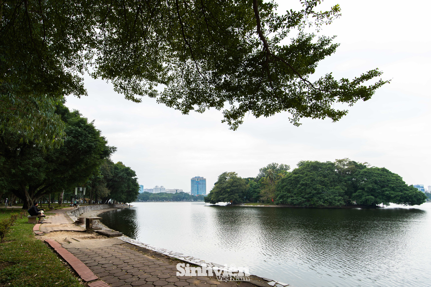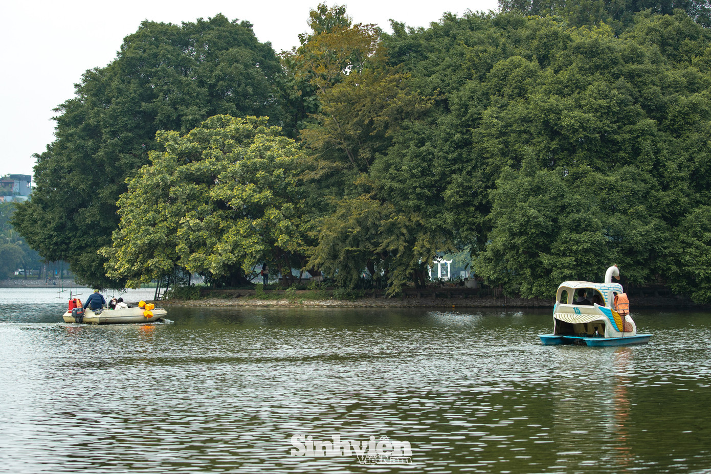 Không gian trên đảo được bao phủ bởi màu xanh ngát của những gốc cây cổ thụ to lớn, tỏa bóng râm mát quanh năm. Điểm nhấn giữa khung cảnh thiên nhiên ấy là đền Ngọc Liên, tách biệt hoàn toàn với sự xô bồ của phố thị.