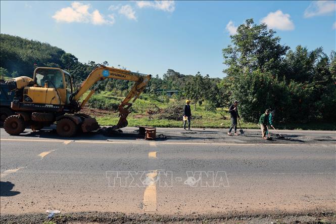 Sửa chữa, bảo trì mặt đường Hồ Chí Minh, đoạn qua xã Quảng Tín, tỉnh Lâm Đồng.