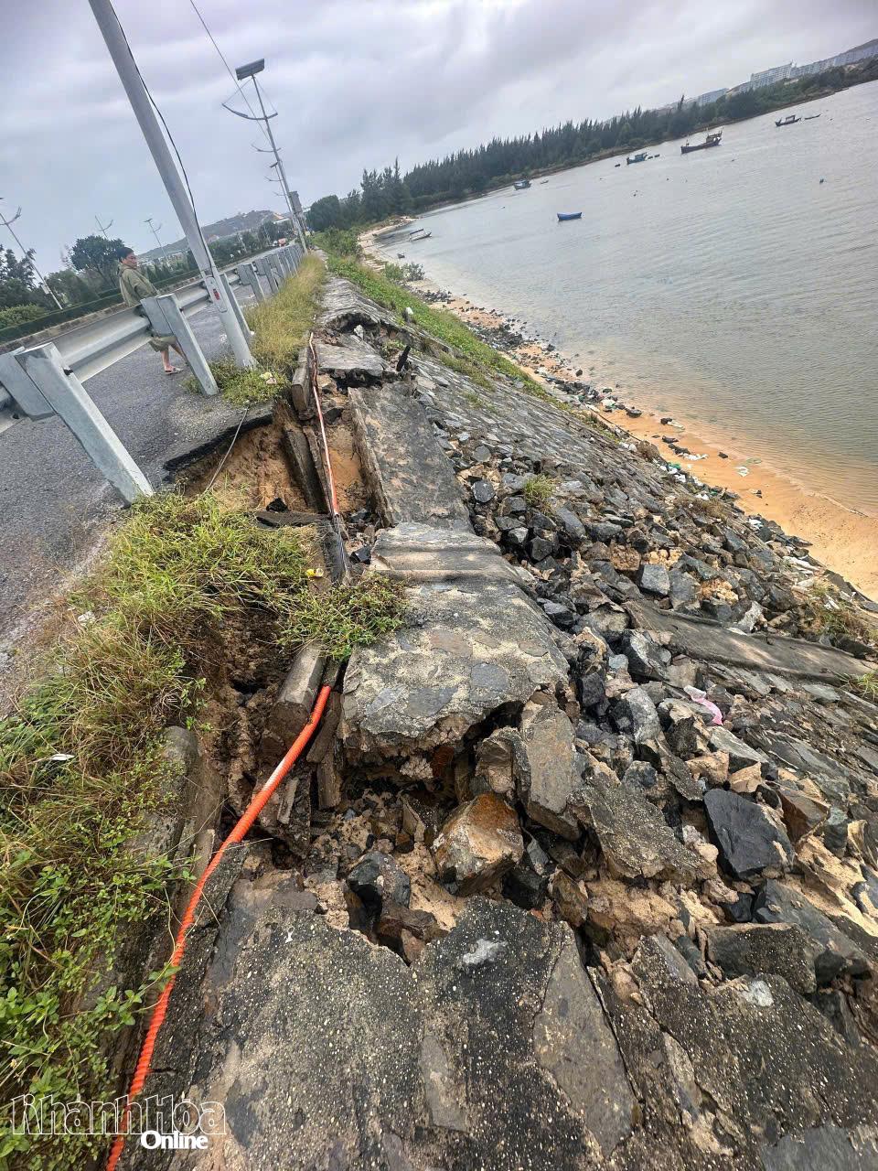 Đường Nguyễn Tất Thành đoạn Km34+200 - Km34+480 (phường Bắc Cam Ranh). Đối với các vị trí sạt lở mái taluy âm bên trái đường dẫn đầu cầu mố M1 cầu Long Hồ đoạn Km34+200 - Km34+480 sẽ sửa chữa, bồi hoàn mái taluy âm bằng bê tông xi măng dày 15cm. Đối với các vị trí sạt lở mái taluy âm tứ nón, hư hỏng chân khay bên trái mố M1 cầu Long Hồ tại Km34+480 sẽ sửa chữa, bồi hoàn mái ta luy âm tứ nón và chân khay mố bằng kết cấu đá hộc xây vữa xi măng. Kinh phí sửa sửa chữa khoảng 750 triệu đồng.