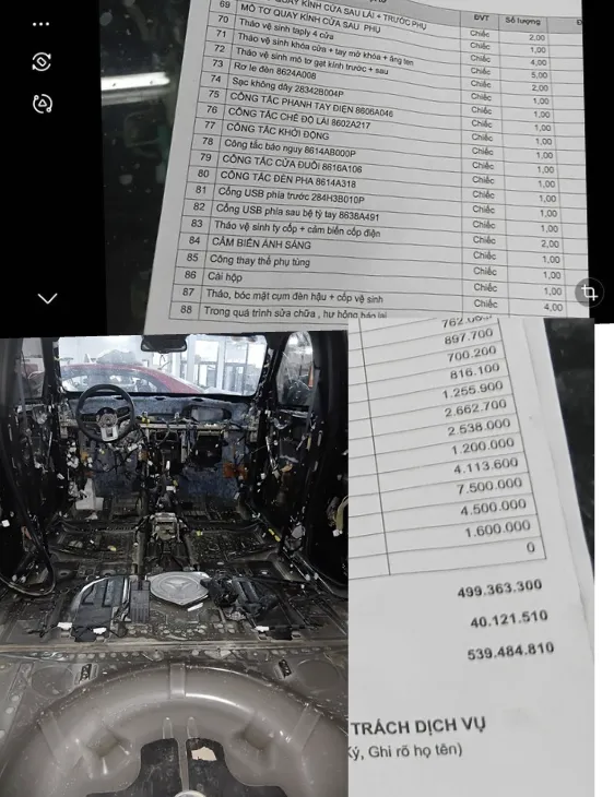Đáng chú ý, trên các trang mạng xã hội truyền tay nhau về trường hợp một chiếc Mitsubishi Xforce được báo giá sửa chữa hơn 80 hạng mục với tổng chi phí lên đến gần 540 triệu đồng.