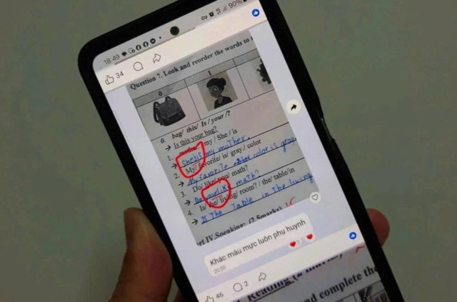 Bài kiểm tra của học sinh bị thêm nét chữ theo phản ánh của phụ huynh (Ảnh chụp màn hình).